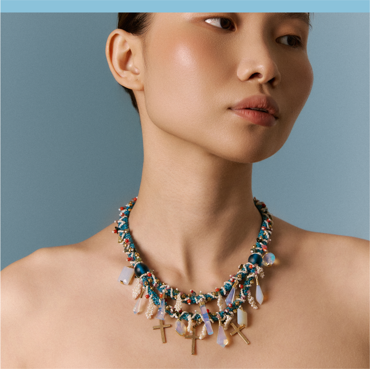LUCIA NECKLACE - Antique Blue & Gold Story Necklace